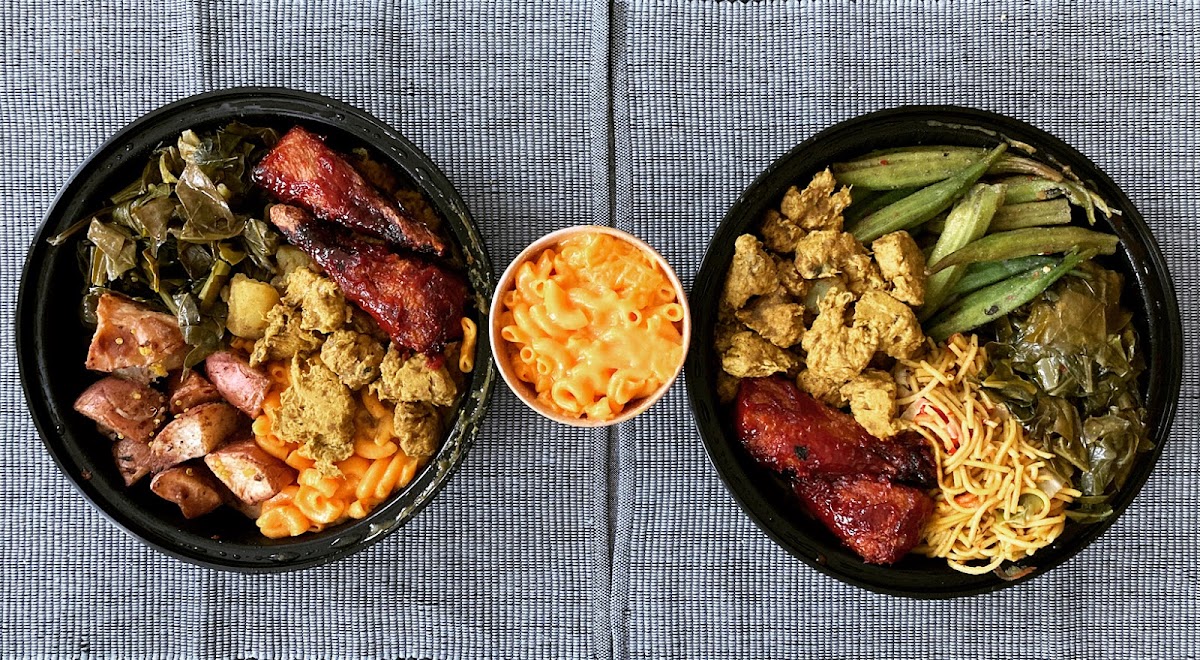 Mac and Cheese holds a special place for many guests. Often described as rich, creamy, and deeply satisfying, the vegan mac and cheese is frequently called a favorite. Variations pair it with vegetable lo mein, rice, or barbecue style drumsticks made entirely from plant based ingredients. These combinations create full meals that feel familiar yet fresh.